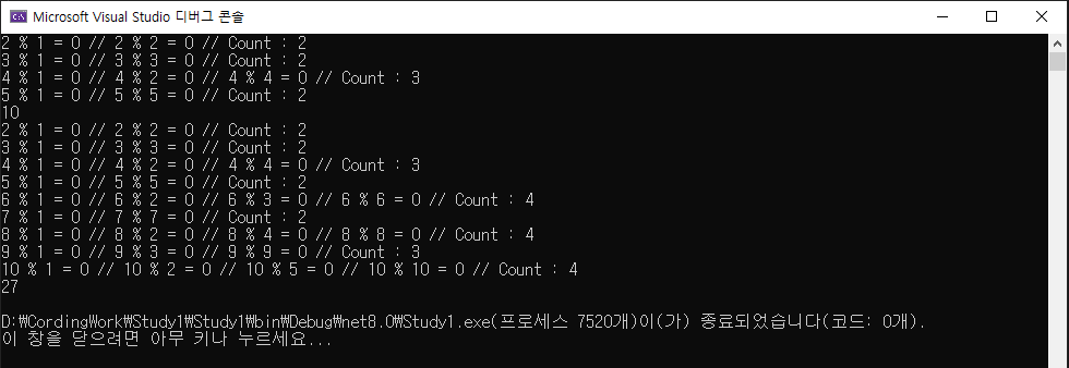 약수를 구하는 과정에서 반복문과 조건문을 많이 사용하여 처리 시간이 오래걸렸던 것으로 판단된다.